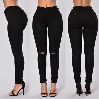 High Waist Skinny Jeans With Knee Slit